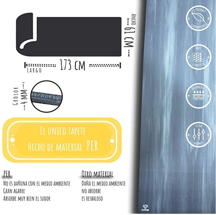 El tapete fitness para yoga, pilates y ejercicio HATHIS está elaborado con materiales eco-friendly y biodegradables.